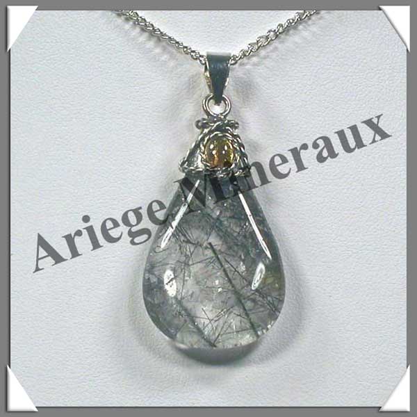 QUARTZ TOURMALINE - Pendentif Argent - Goutte - 25x10 mm - W005 Brésil