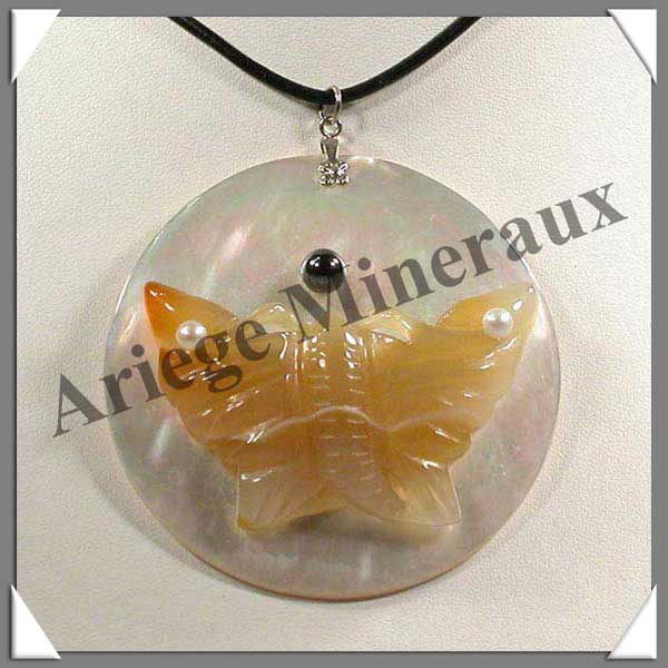 NACRE et PAPILLON AGATE - Pendentif - 60 mm - NN3